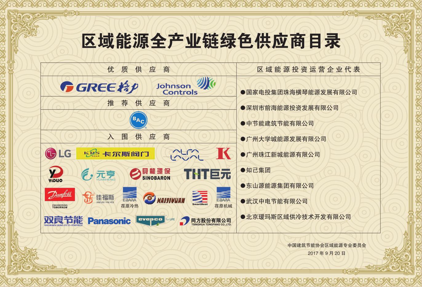 入选“中国建筑节能协会区域能源委员会”的区域能源全产业链绿色供应商目录