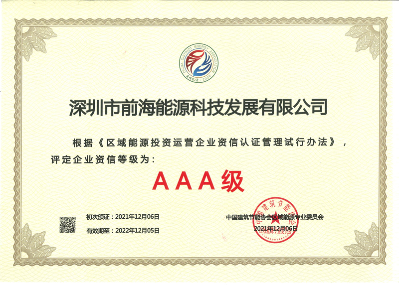 2021年被授予“区域能源投资运营企业资信等级”AAA级“