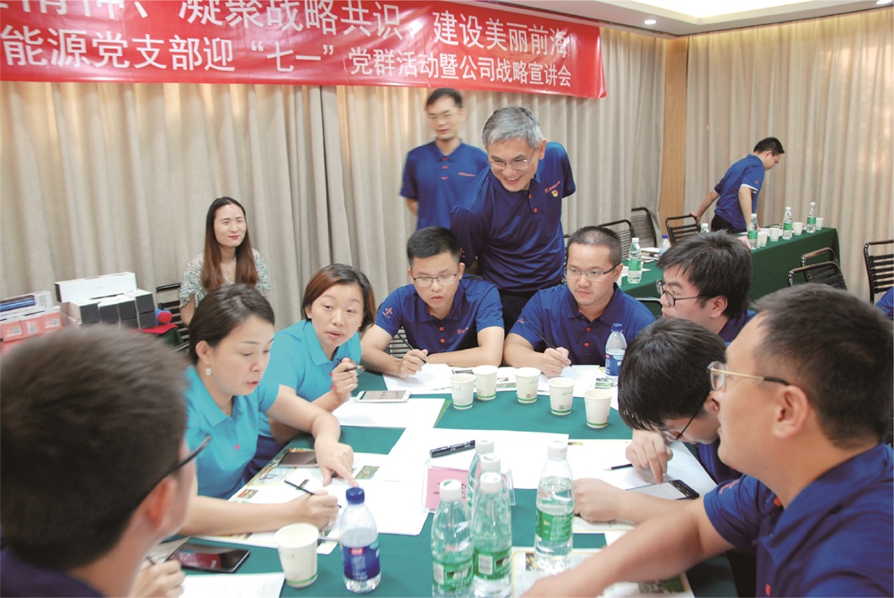 前海能源公司党支部成立于2015年12月,现有党员21人,党员占全体员工35%。自支部成立以来,能源公司党支部深入贯彻党的十九大精神,为了把支部建设工作落到实处,能源公司党支部坚持以党章为根本遵循,以提升组织力为重点、突出政治功能,聚焦基本队伍、基本制度、基本活动、基本阵地、基本作用、基本保障,新城党支部建设的基本规范,努力探索在完全开放条件下党支部建设的新路子。这一年来,前海能源党支部坚持“党建+业务”的模式,相继开展了“迎‘七一’党群活动暨公司战略宣讲会”、举办“中国-瑞典区域集中供冷技术交流会”国际论坛、举办“清凉一夏、健康用冷”节能宣传周,为社区清洗空调送清凉的公益活动等特色业务活动,力求达到将工作业务与党务工作进行有效结合;此外,前海能源党支部还积极开展支部共建活动,先后与前海管理局办公室党支部第二小组开展共学共建活动,与前海控股公司置业公建项目党支部赴烈士陵园开展“铭记光辉党史、传承历史薪火,共建前海新时代”党建活动,以达到促进横向交流、共同发展的目的。