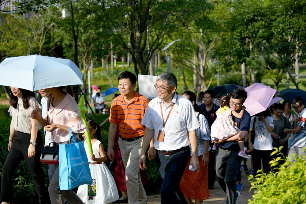随后,家属们来到前海石公园,昔日滩涂如今树影婆娑、高楼林立、生机勃勃,前海石是最好的见证。在前海石旁,员工和家属跟随着总书记的脚步看前海变化,回忆习总书记在前海石前作出的重要指示:“要充分发挥特区人‘敢为天下先’的精神,敢于‘吃螃蟹’”,“一张白纸,可以画出最美、最好的图画”,“发展这么快,说明前海模式是可行的”,“实践证明,改革开放是正确的,必须一以贯之、锲而不舍、再接再厉”。能源党支部党员同志们纷纷表示,将不忘初心、牢记使命,努力建设城市新中心,不负总书记的殷殷重托。