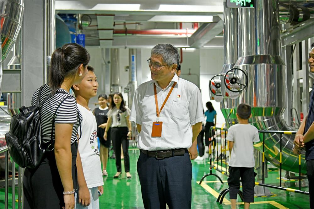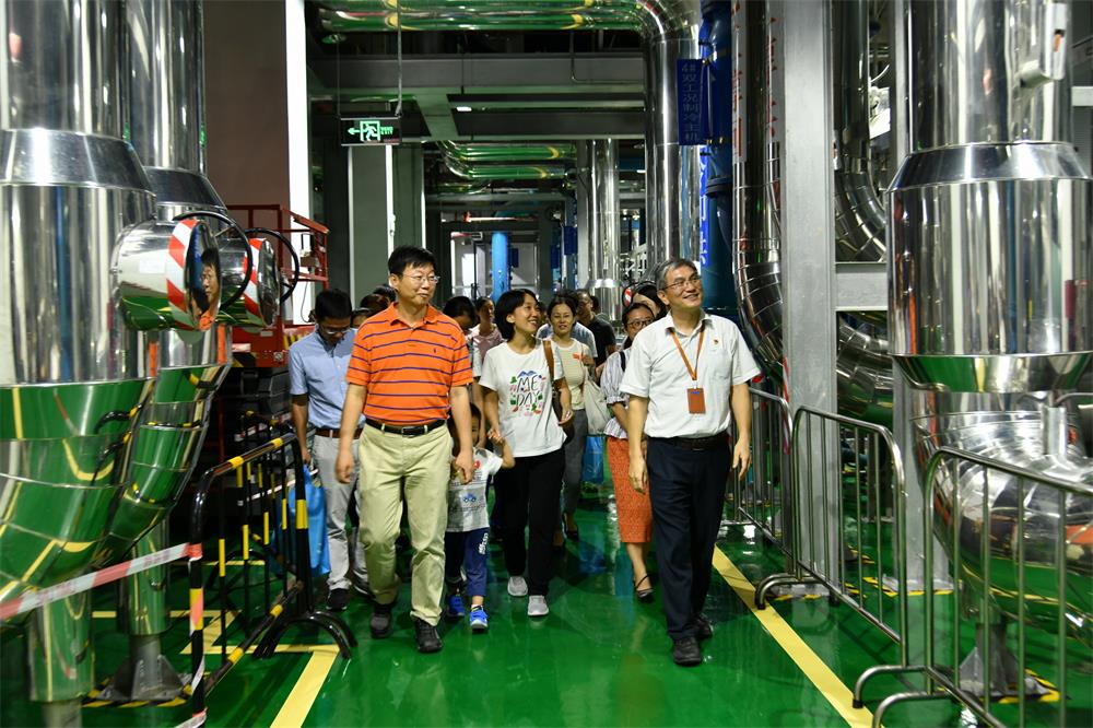 参观过后,员工携家属们来到前海2号冷站。在2号冷站,公司副总经理李红梅向员工家属讲解了前海区域集中供冷的整体规划、冷站的工作原理及其社会效益。家属们在制冷工艺管道之间穿行观摩,他们甚至好奇地贴耳倾听,无不为如此大规模的区域集中供冷设施由衷惊叹。“前海的集中供冷太壮观了,前海能源的事业非常有意义!”。在家属们加深对供冷站了解的同时,在2号冷站负三层却是另一番热闹的场景,孩子们兴高采烈地拿着满是信戳的前海“打卡”地图兑换自己的礼品,为今天的前海之行画上圆满句号。