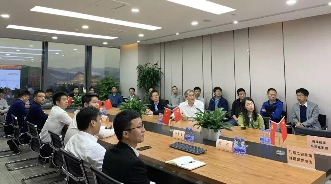 参观过后,能源公司党支部和三局二安华南党支部举行党建座谈会,就支部建设工作分享各自的思路和方法。能源公司党支部书记傅建平表示,此次参观活动对于引导党员和入党积极分子重温党的历史,提高党性修养具有重要作用。三局二安是5号冷站的机电总包单位,此次共建是党建融入业务发展,党建促进业务发展的重要方式,也是能源党支部落实“支部建在项目上”的重要举措。希望一线党员同志能依托党小组,在项目上发挥先锋模范作用,同心同向同行,共建绿色前海。三局二安华南党支部则表示,希望以此次党支部共学共建作为交流的起点,以党建促业务,确保前海5号冷站机电安装业务保质保量,如期完成。