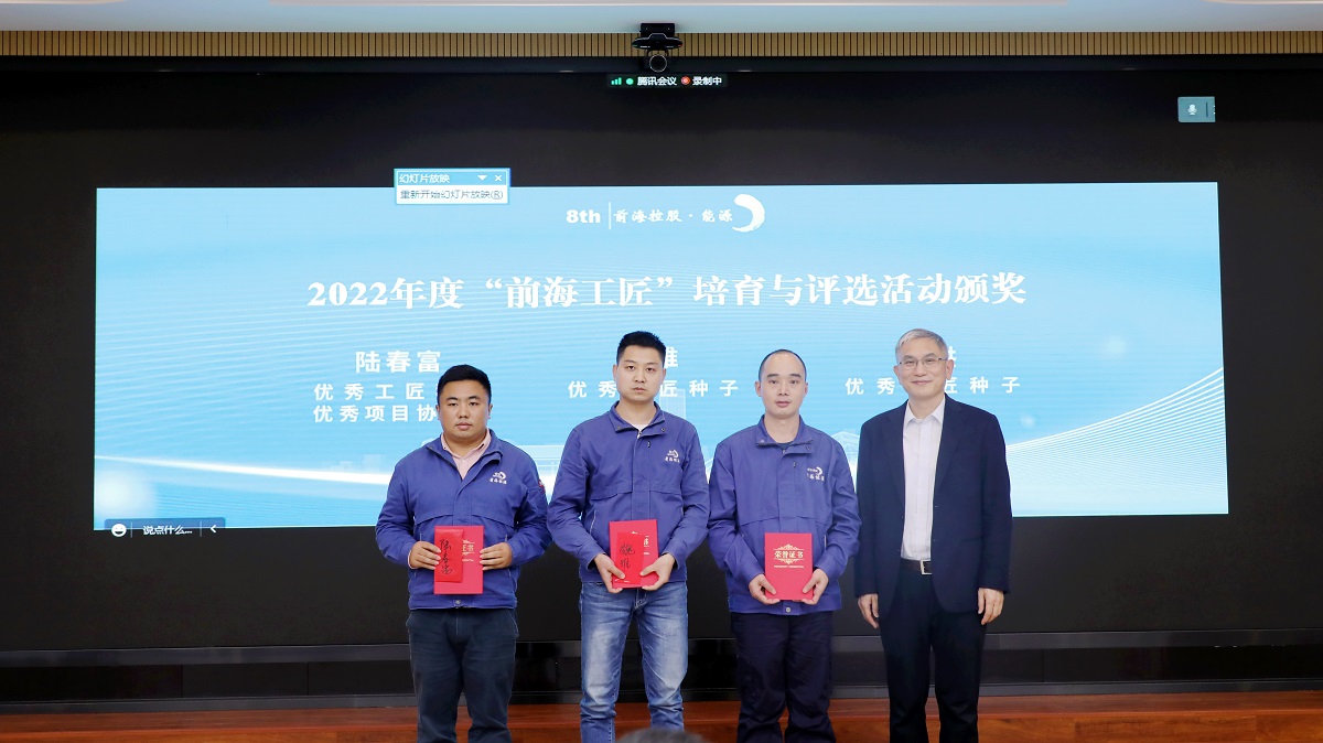 会议中,史兆仓同志和傅建平同志为获得2022年度“前海工匠”评选活动荣誉的7位员工颁发了奖状奖励,以感恩和表彰员工为企业发展做出的不懈努力。