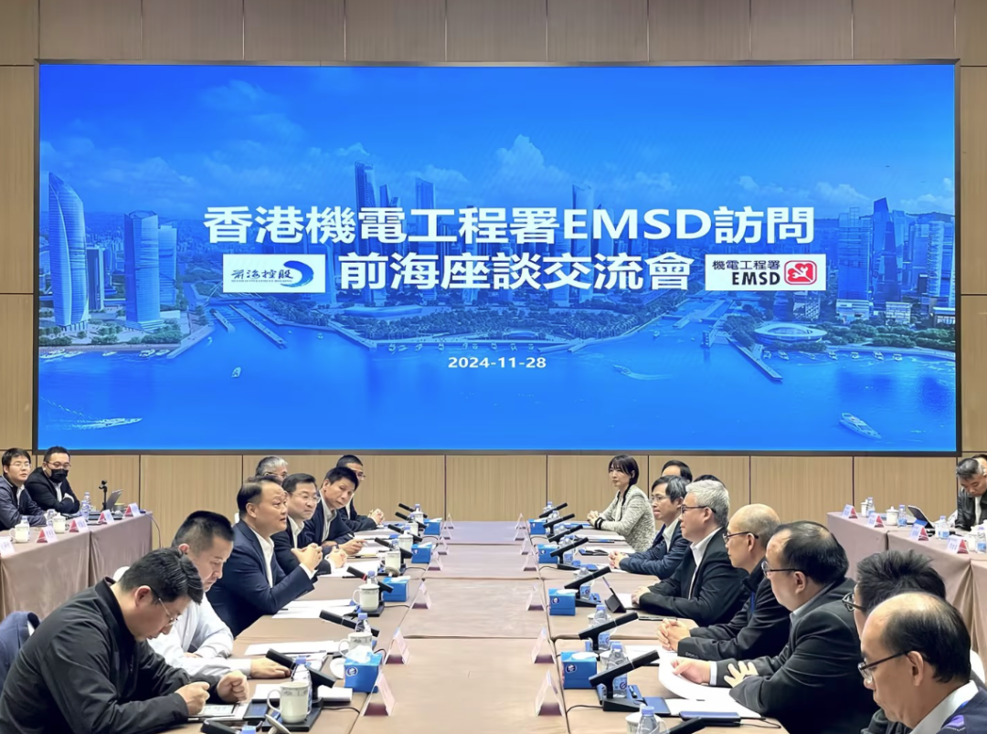 11月28日,香港特区政府机电工程署(以下简称“香港机电工程署”)署长潘国英、副署长陈柏祥带队参访前海。这是香港机电工程署继2023年7月首次参访前海后,再次来到前海调研区域供冷项目。前海管理局副局长谢晖晖,前海建投集团党委书记、董事长李荣生及前海管理局发展改革处、建设管理处、数据管理处和前海科创集团代表参加调研。